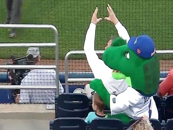 GRÂCE À CETTE MASCOTTE, CET ENFANT ÉVITE DE SE FAIRE FRAPPER PAR UNE BALLE DE BASEBALL