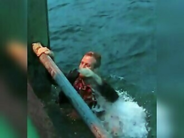 IL S'AMUSE SUR UN JETÉE ET FINIT À L'EAU