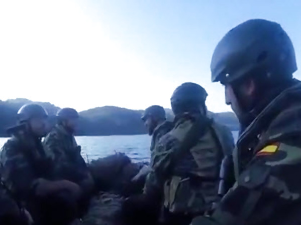 UN HÉLICOPTÈRE CHINOOK DE L’ARMÉE RÉALISE UN AMERISSAGE POUR RÉCUPÉRER UN ZODIAC
