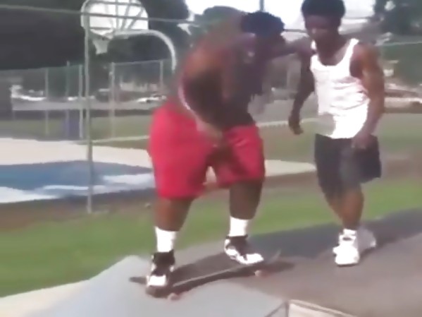 CE JEUNE EN SURPOIDS A VOULU TENTER DE DESCENDRE UNE PETITE RAMPE EN SKATE