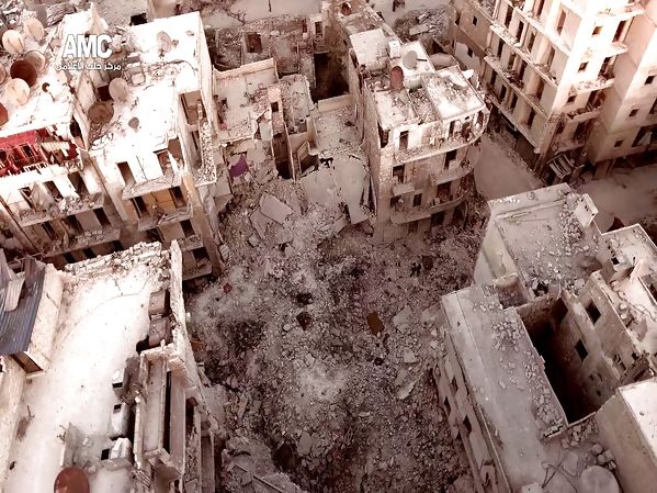 UN DRONE SURVOLE UN QUARTIER D'ALEP APRÈS 5 ANS DE GUERRE