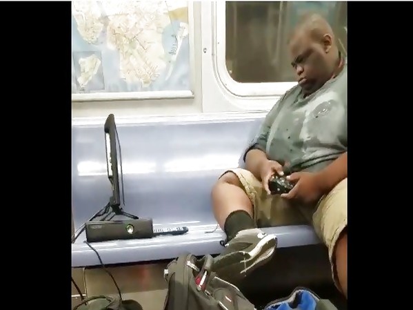JOUER À LA CONSOLE SUR UNE TÉLÉVISION DANS LE MÉTRO NEW-YORKAIS