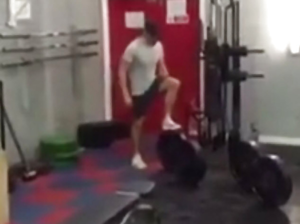 LE JOUEUR DE FOOTBALL AUSTRALIEN DYLAN SHIEL FAIT UN PETIT EXERCICE POUR TRAVAILLER SES CUISSES