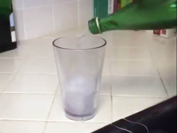 UN HOMME NOUS MONTRE UN TOUR ASSEZ ÉTONNANT OÙ IL VERSE DE L’EAU DANS UN VERRE