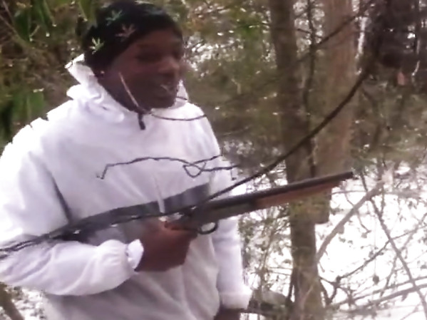 UN JEUNE HOMME TESTE UN FUSIL À CANON SCIÉ