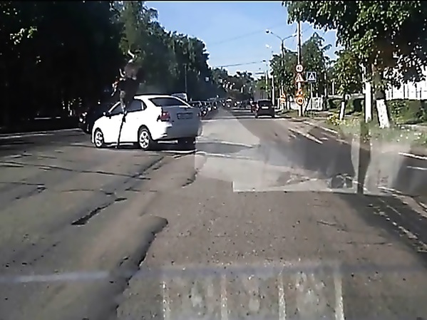 UN ÉLAN QUI S’EST PERDU EN VILLE A RÉUSSI À SAUTER PAR DESSUS UNE VOITURE (RUSSIE)