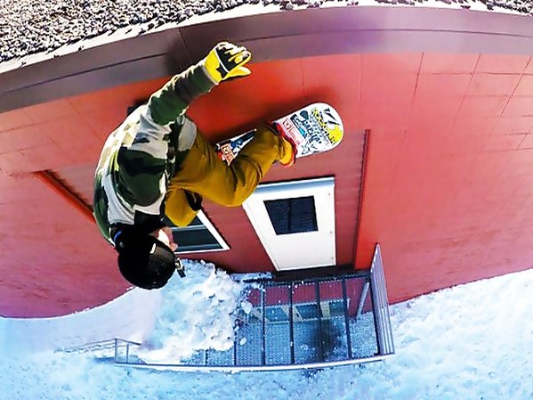 DAN BRISSE ORIGINAIRE DE WASHINGTON RÉALISE UNE SESSION DE SNOWBOARD URBAIN
