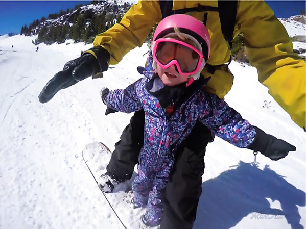 UN PAPA FAIT DU SNOWBOARD AVEC SES DEUX FILLES