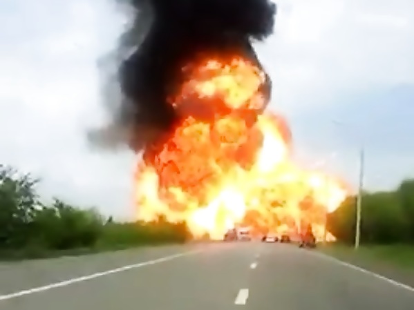 UN CAMION DE SOLVANT EN FEU EXPLOSE (RUSSIE)
