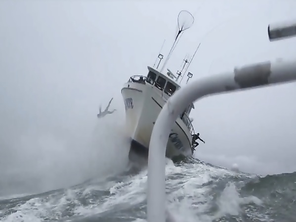UN SURFEUR ÉJECTÉ DE SON BATEAU À CAUSE D'UNE VAGUE GÉANTE (CALIFORNIE)