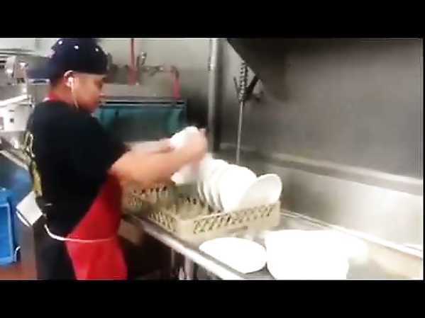 UN HOMME NETTOIE DES ASSIETTES TRÈS RAPIDEMENT
