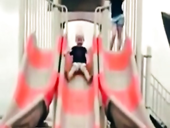 PETIT GARÇON A UNE DRÔLE DE TECHNIQUE POUR FAIRE DU TOBOGGAN