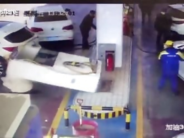 DEUX PERSONNES SE FONT ÉCRASER PAR UNE POMPE À ESSENCE (CHINE)