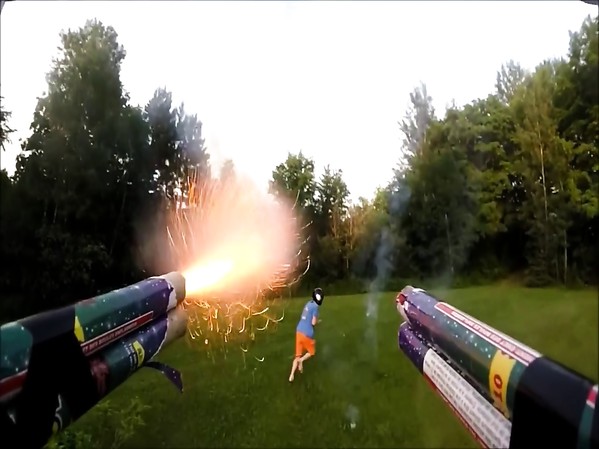 UN DRONE ÉQUIPÉ D'UNE CAMÉRA ET ARMÉ DE FEUX D'ARTIFICE S'EN PREND À UN GARÇON DANS UNE CLAIRIÈRE