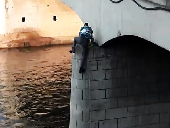 UN HOMME VIENT EN AIDE À UN CHIEN ÉCHOUÉ SUR UN PETIT ÎLOT PRÈS DU PONT DE LA RIVIÈRE NIŠAVA