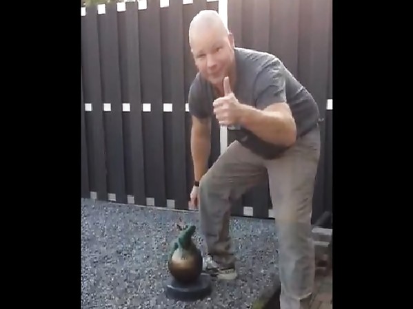 UN HOMME DONNE DE SA PERSONNE POUR DÉCAPSULER UNE BOUTEILLE DE BIÈRE