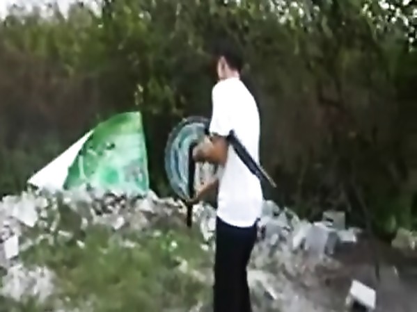 JEUNE HOMME DANGEREUX AVEC DES FUSILS À POMPE