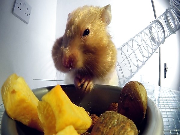 HAMSTER PASSE AUX RAYONS X PENDANT QU'IL REMPLIT SES ABAJOUES AVEC DIVERS ALIMENTS POUR LES TRANSPORTER