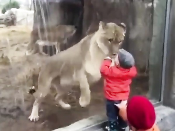 DANS UN ZOO DU TEXAS, UNE LIONNE S’EST APPROCHÉE D’UNE VITRE AVEC LA FERME INTENTION D’ATTRAPER UN BÉBÉ POUR LE MANGER