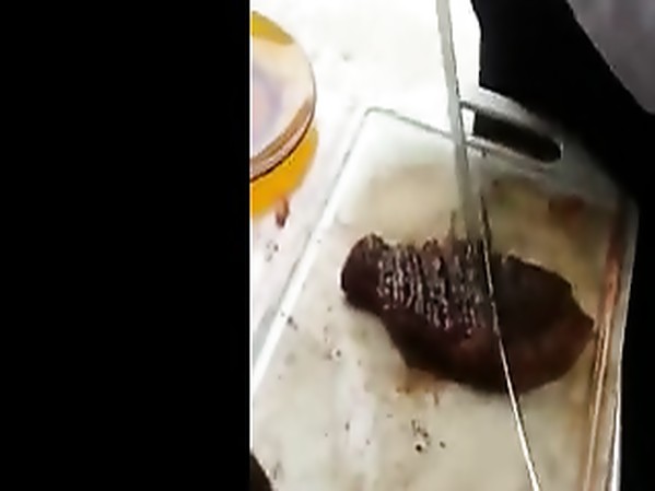 UN HOMME A UNE TECHNIQUE PARTICULIÈREMENT EFFICACE POUR COUPER RAPIDEMENT UN STEAK EN FINES TRANCHES