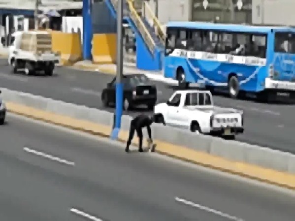POLICIER ARRÊTE LE TRAFIC POUR SAUVER UN CHIEN EFFRAYÉ COINCÉ SUR L'AUTOROUTE (PÉROU)
