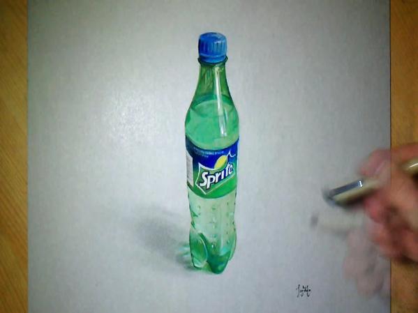 DESSIN HYPERRÉALISTE D'UNE BOUTEILLE DE «SPRITE»
