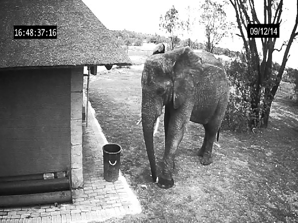 CAMÉRA DE SURVEILLANCE A FILMÉ UN ÉLÉPHANT QUI S'APPROCHE D'UNE MAISON POUR METTRE DES DÉTRITUS DANS UNE POUBELLE