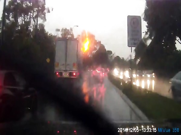 ECLAIR FRAPPE UN ARBRE QUI TOMBE SUR LA VOITURE (AUSTRALIE)