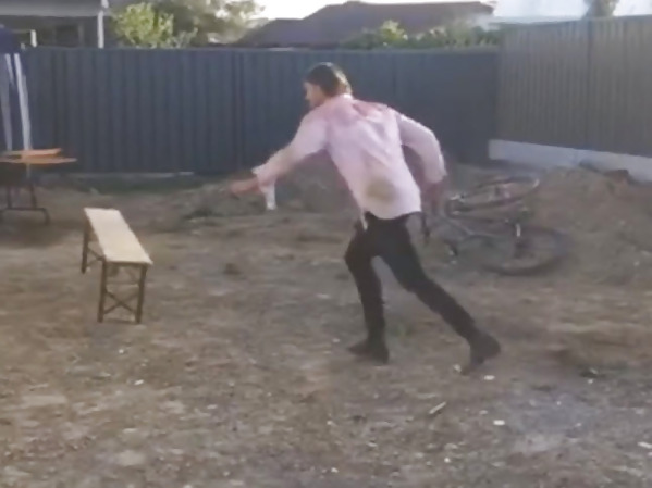 UN HOMME TENTE DE CASSER UN BANC