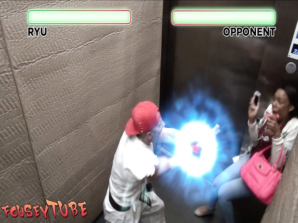 CAMÉRA CACHÉE: RYU STREET FIGHTER DANS L'ASCENSEUR