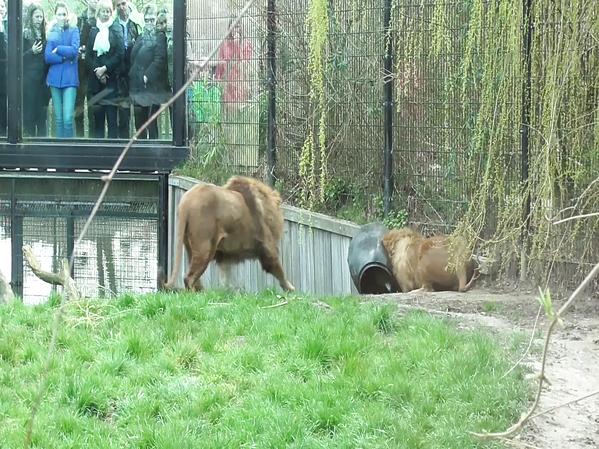 UN LION SE COINCE LA TÊTE DANS UN BARIL