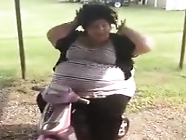 UNE FEMME OBÈSE A VOULU FAIRE RIRE SA FILLE EN SE METTANT À CHANTER SUR UN SCOOTER POUR ENFANTS