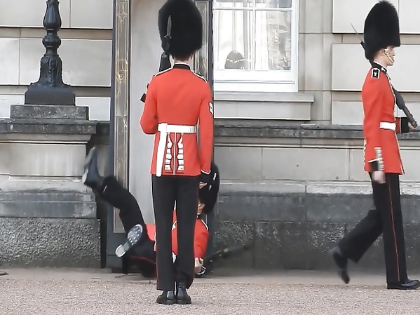 UN GARDE DE BUCKINGHAM PALACE A EU LA MÉSAVENTURE DE FAIRE UNE BELLE CHUTE