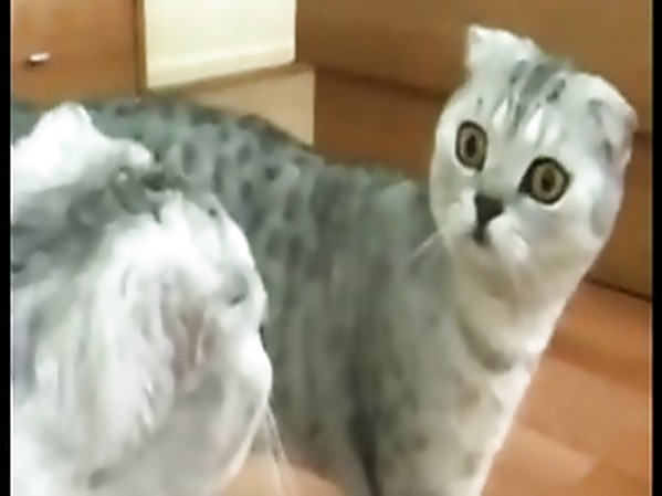 CHAT A UN REGARD DRAMATIQUE LORSQU'IL SE REGARDE DANS UN MIROIR