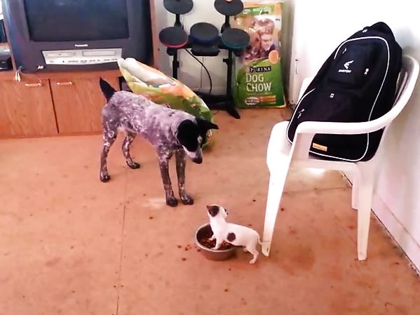UN CHIOT REFUSE DE PARTAGER SA GAMELLE