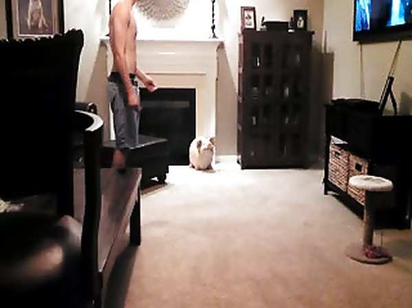 CHAT SAUTE SUR LES FESSES DE SON MAÎTRE