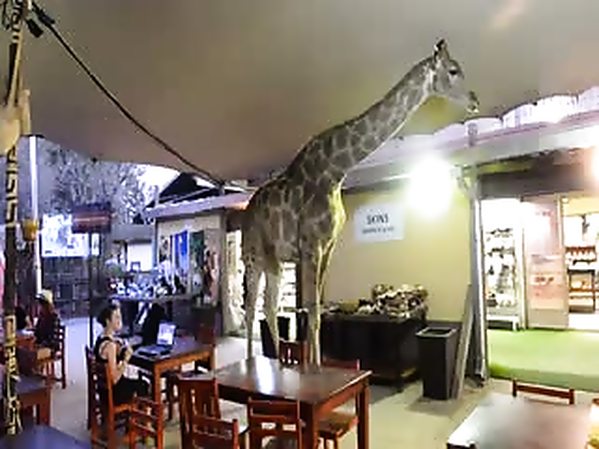 GIRAFE TRAVERSE UN RESTAURANT (AFRIQUE DU SUD)