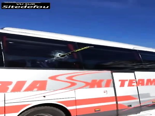 IL FAIT LE CLOWN AVEC SES SKIS ET FINIT PAR FRACASSER UNE VITRE DE BUS