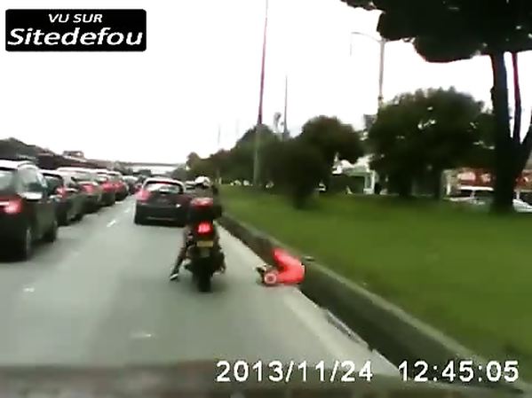 PASSAGER D'UNE MOTO TOMBE SUR LA ROUTE