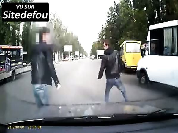 PIÉTON SE FAIT AGRESSIF SE FAIT CALMER PAR UN AUTOMOBILISTE (UKRAINE)