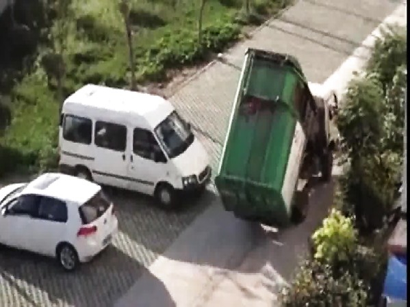 UN ÉBOUEUR FAIT LE BEAU AVEC SON CAMION (CHINE)