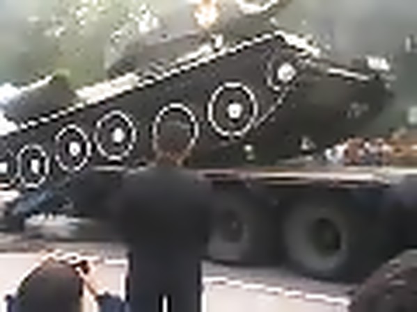 IDIOT RENVERSE UN CHAR LORS D'UNE PARADE EN RUSSIE
