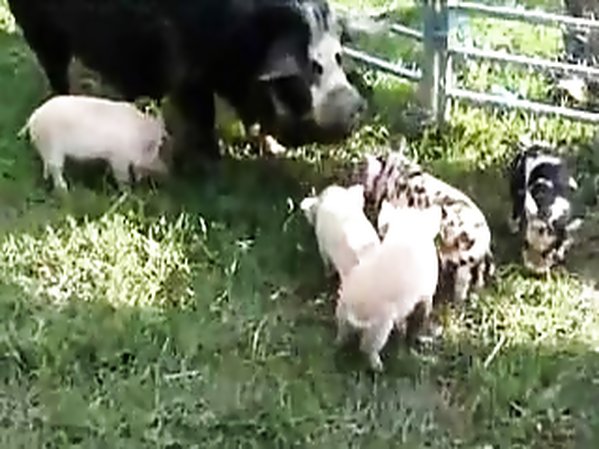 MAMAN COCHON PARTAGE SON REPAS AVEC SES PETITS