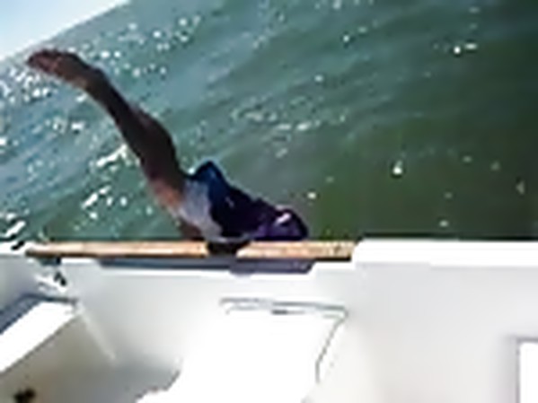 UN TYPE MALADROIT TENTE DE SAUTER D'UN BATEAU