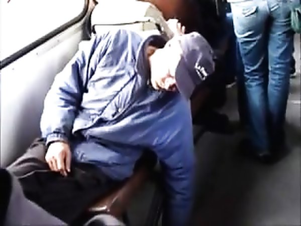 PASSAGER S'ENDORT DANS UN BUS ET TOMBE PAR TERRE COMME UN CON