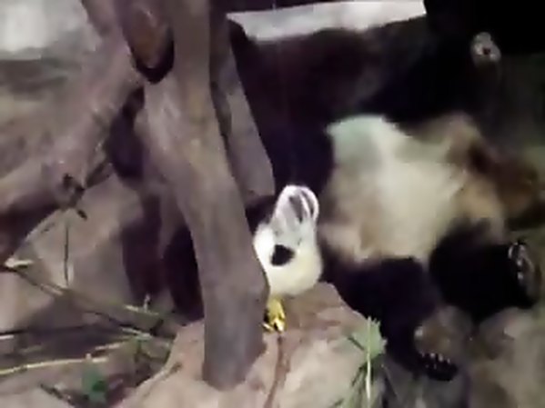 UN PANDA RÉVEILLE SON AMI EN LUI FAISANT DESSUS