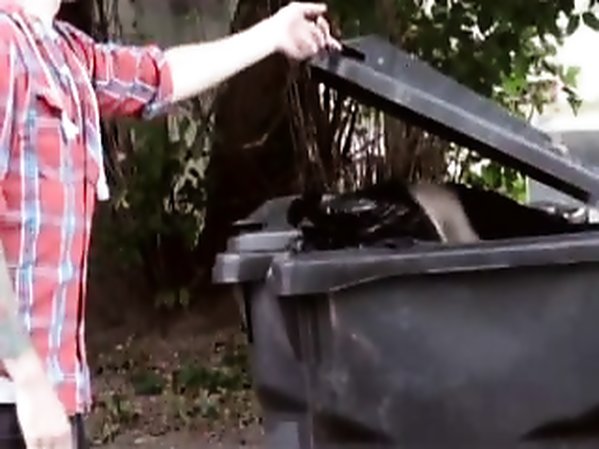 EFFRAYÉ PAR UN ÉCUREUIL DANS UNE POUBELLE