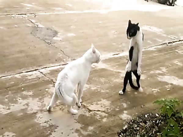 UN CHAT TENTE LA POSTURE DU COBRA POUR INTIMIDER SON ADVERSAIRE