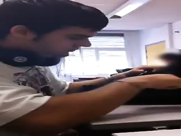 ETUDIANT COUILLU PREND SON PETIT DÉJEUNER DANS LA CLASSE