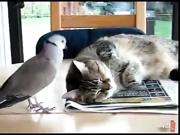 CET OISEAU NE COMPTE PAS LAISSER TRANQUILLE CE PAUVRE CHAT!